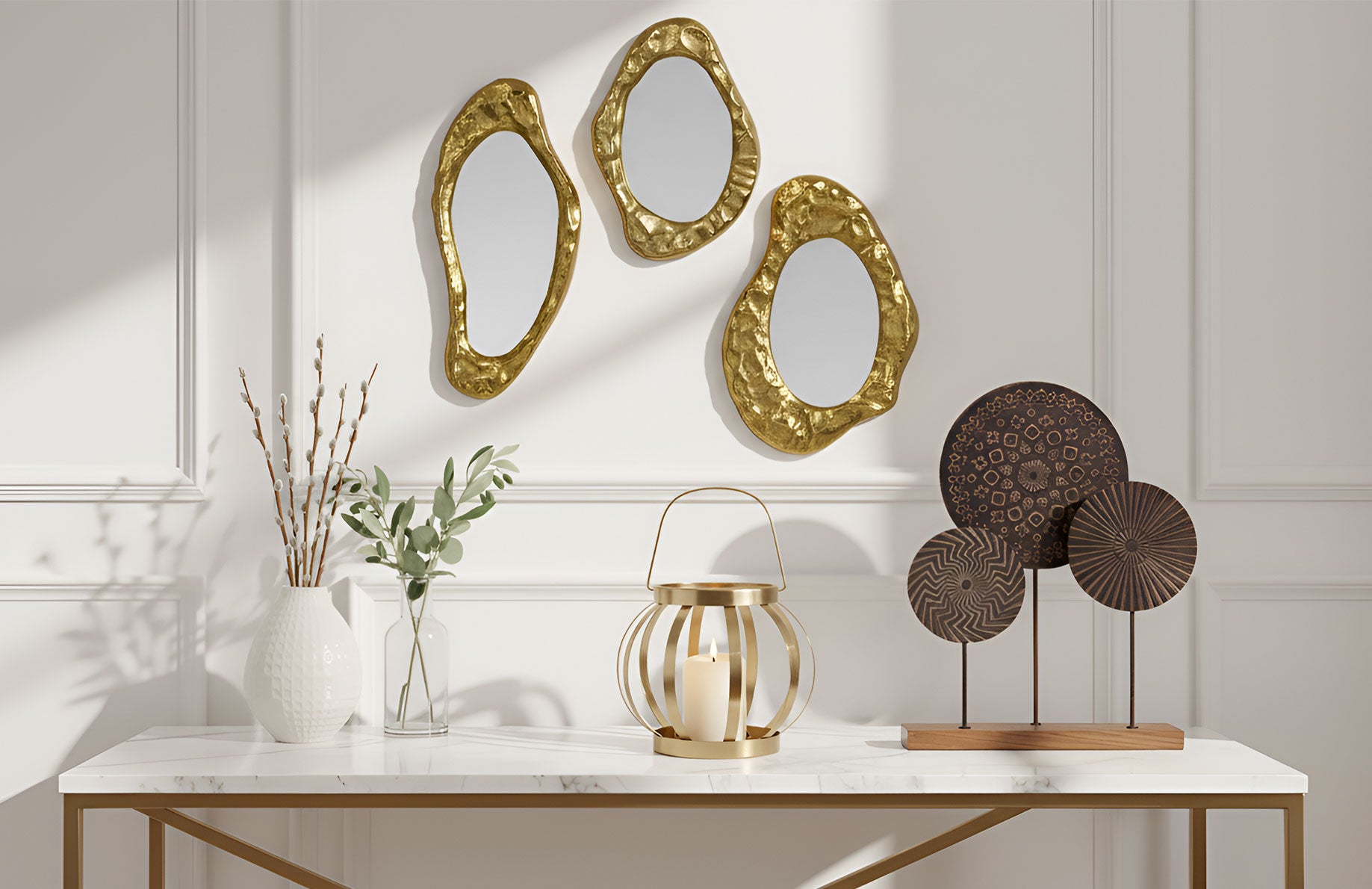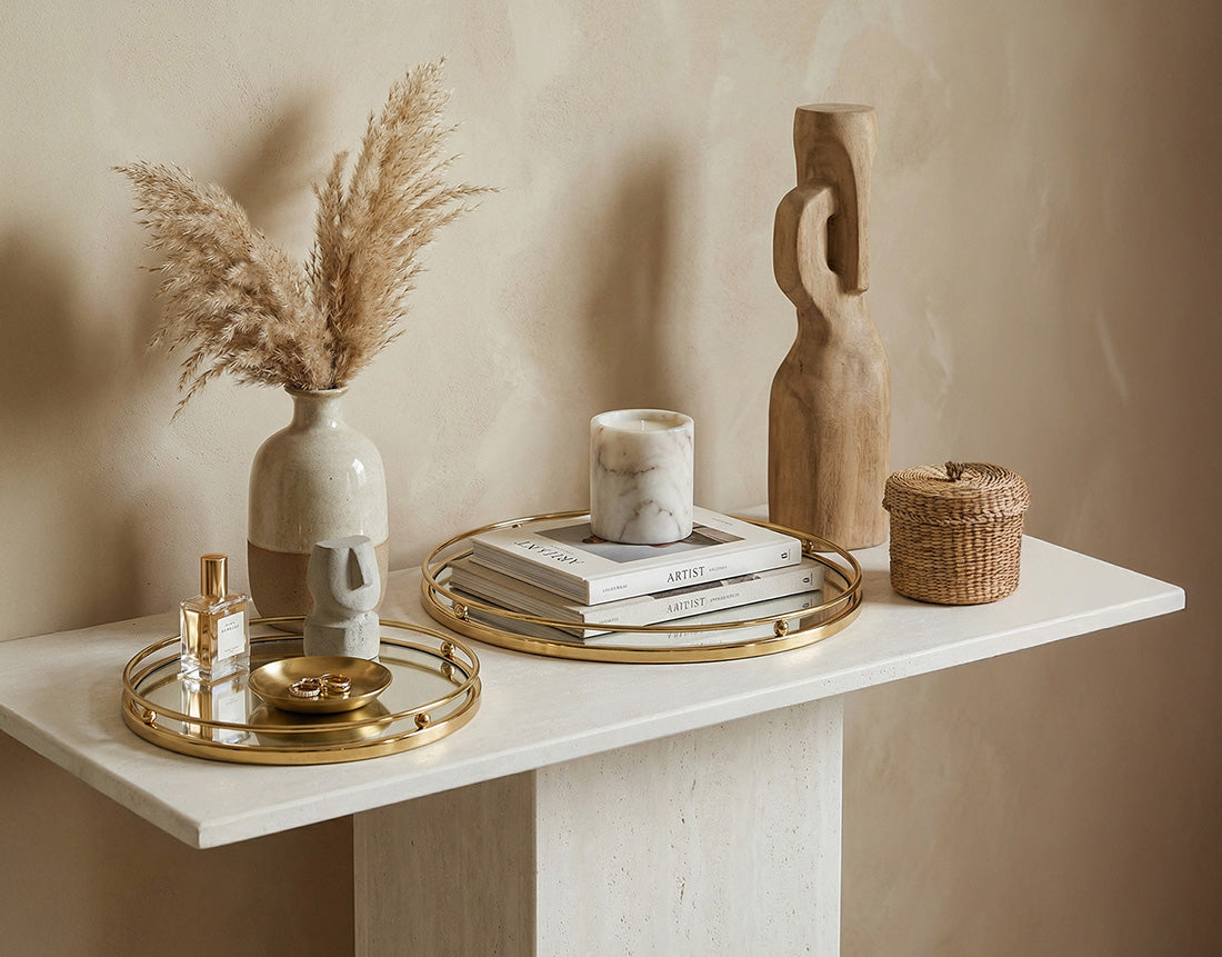 Defined by soft tones, sculptural forms, and refined metallic accents, our modern luxe décor brings understated elegance to contemporary living spaces.