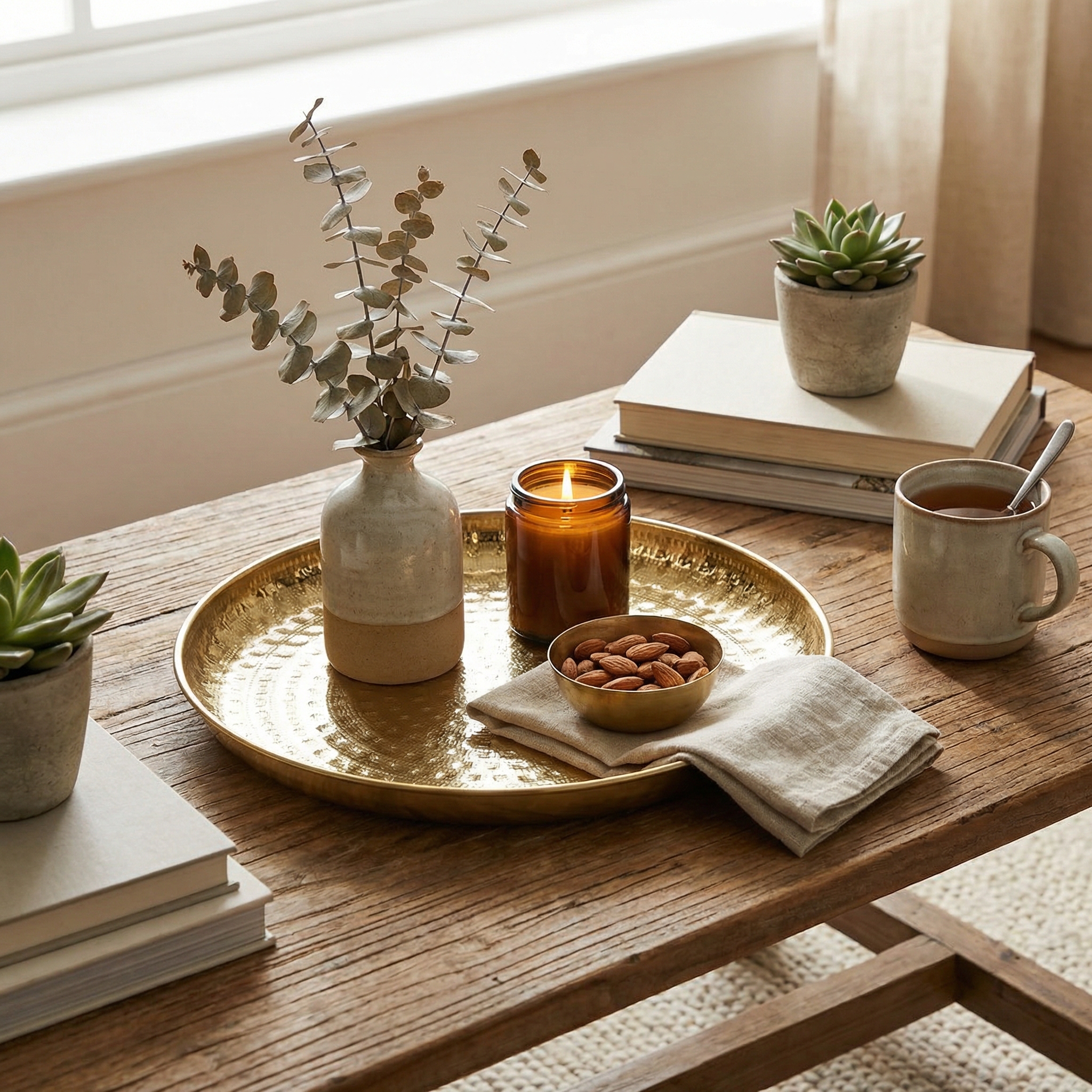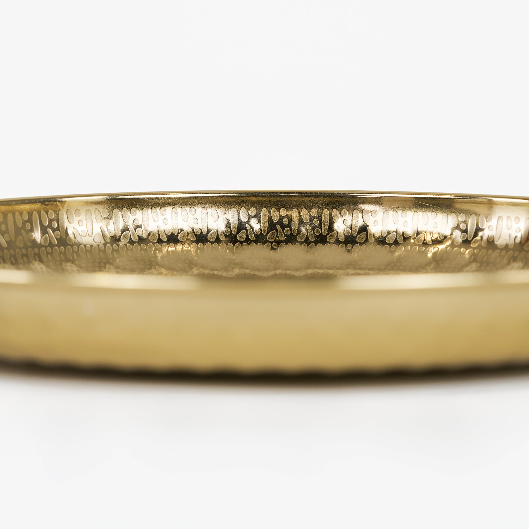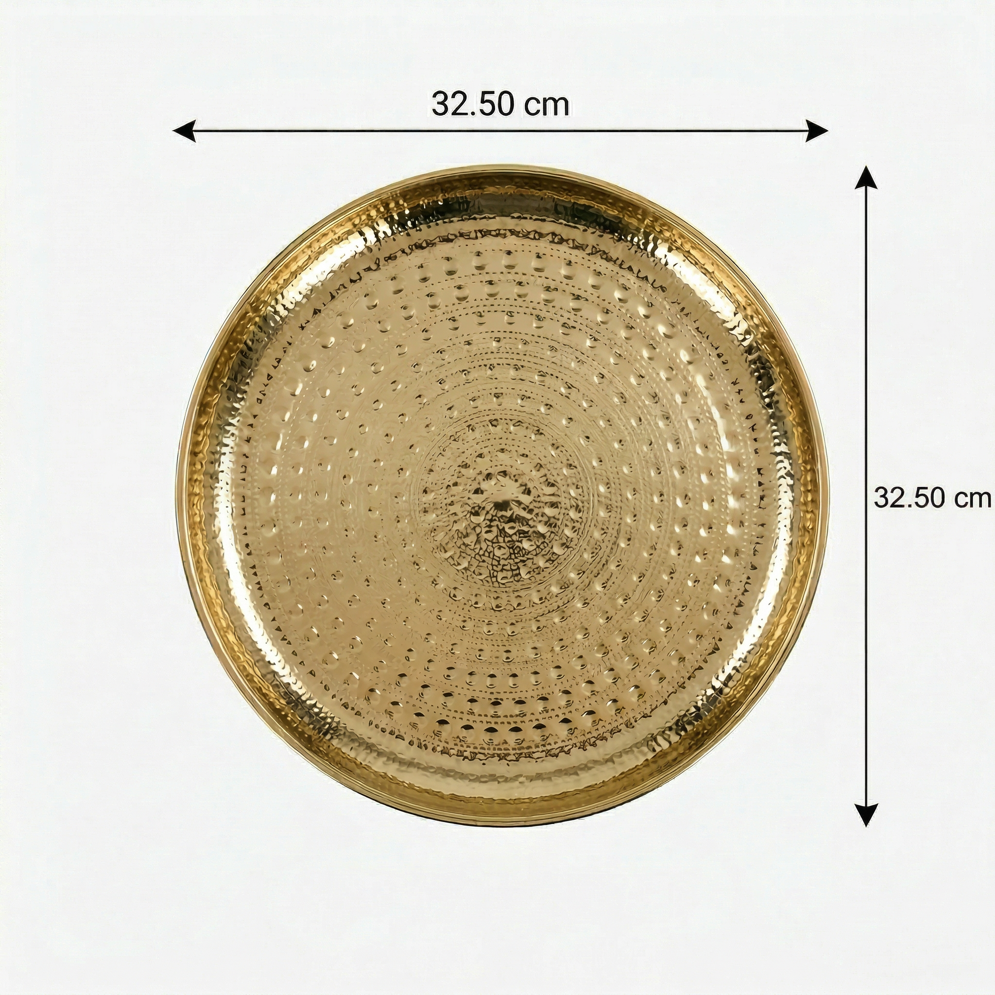 | Features | This Lattice metal platter (33 cm) features an intricate round hammered texture and a luxurious Gold EPL finish. It offers a stable, elegant surface ideal for serving food or drinks. Its size is perfect for table centerpieces, making it a durable and decorative accent tray for any home display. |