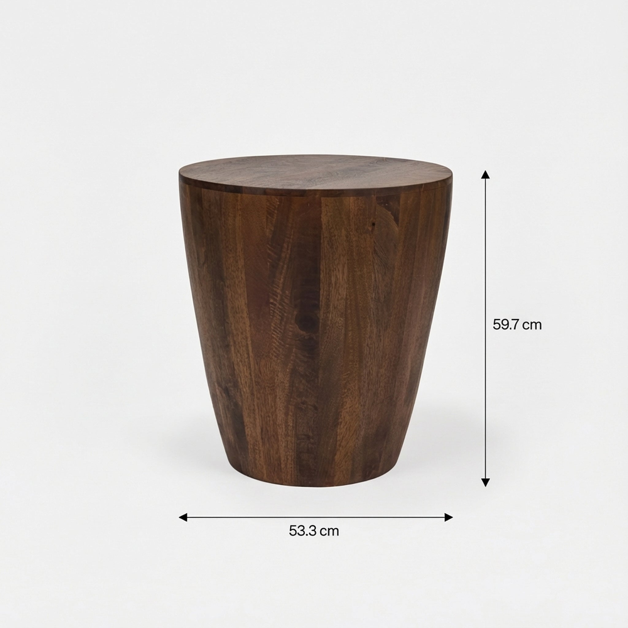 Homelves Presents the Owen Modern Walnut Side Table, a beautifully proportioned accent piece that combines rich warmth with architectural texture. This compact 53.3cm round table features a deep, classic Walnut Finish and a practical 59.7cm height, perfectly positioning it as a sophisticated end or side table. It is solidly supported by a dramatically textured fluted pedestal base, creating a drum-style silhouette that is both visually engaging and incredibly stable. The Owen is an ideal addition to any contemporary living room, providing elegant vertical utility