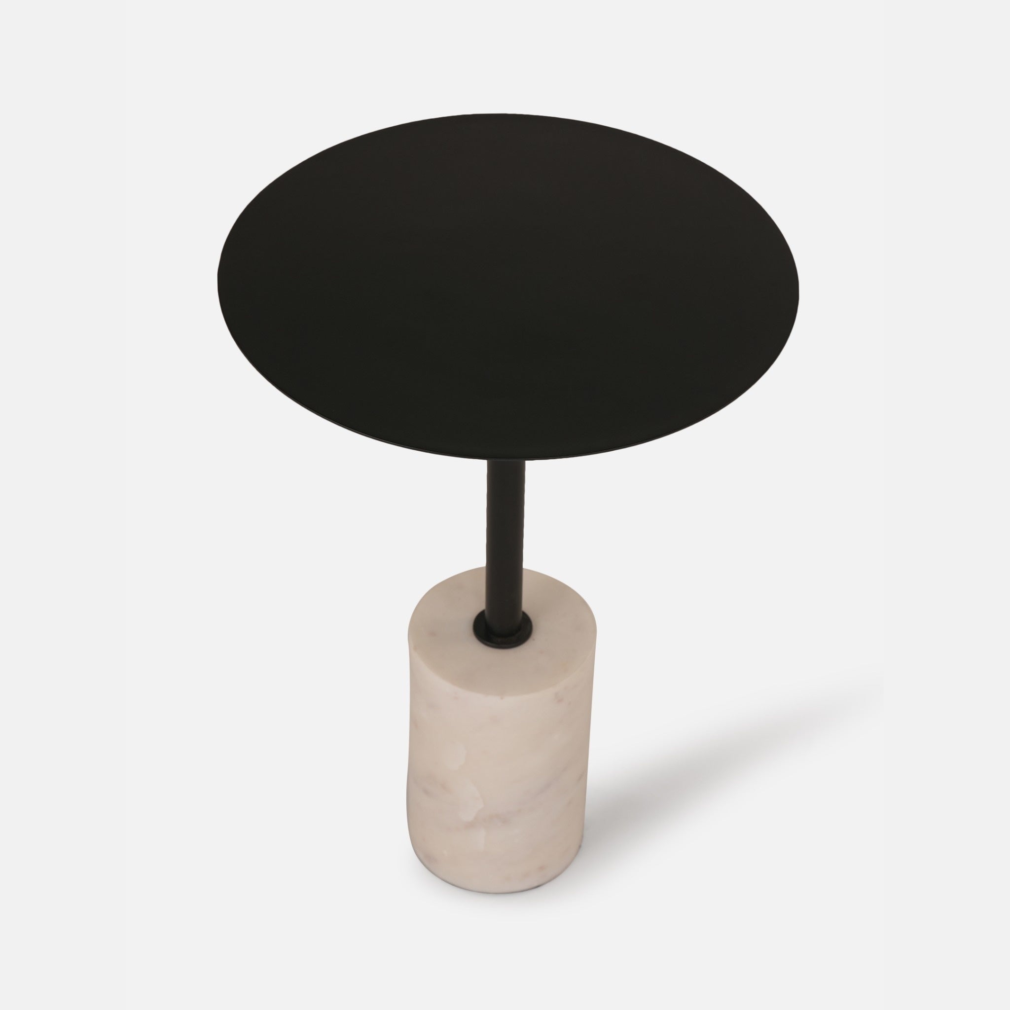 | Features | The Terry Side Table is a Medium (35.6cm Round) accent table (50.8cm Tall) featuring a luxurious Marble base. It boasts a sleek, striking Black Top, making it a perfect Modern Glam End Table or Nightstand. |