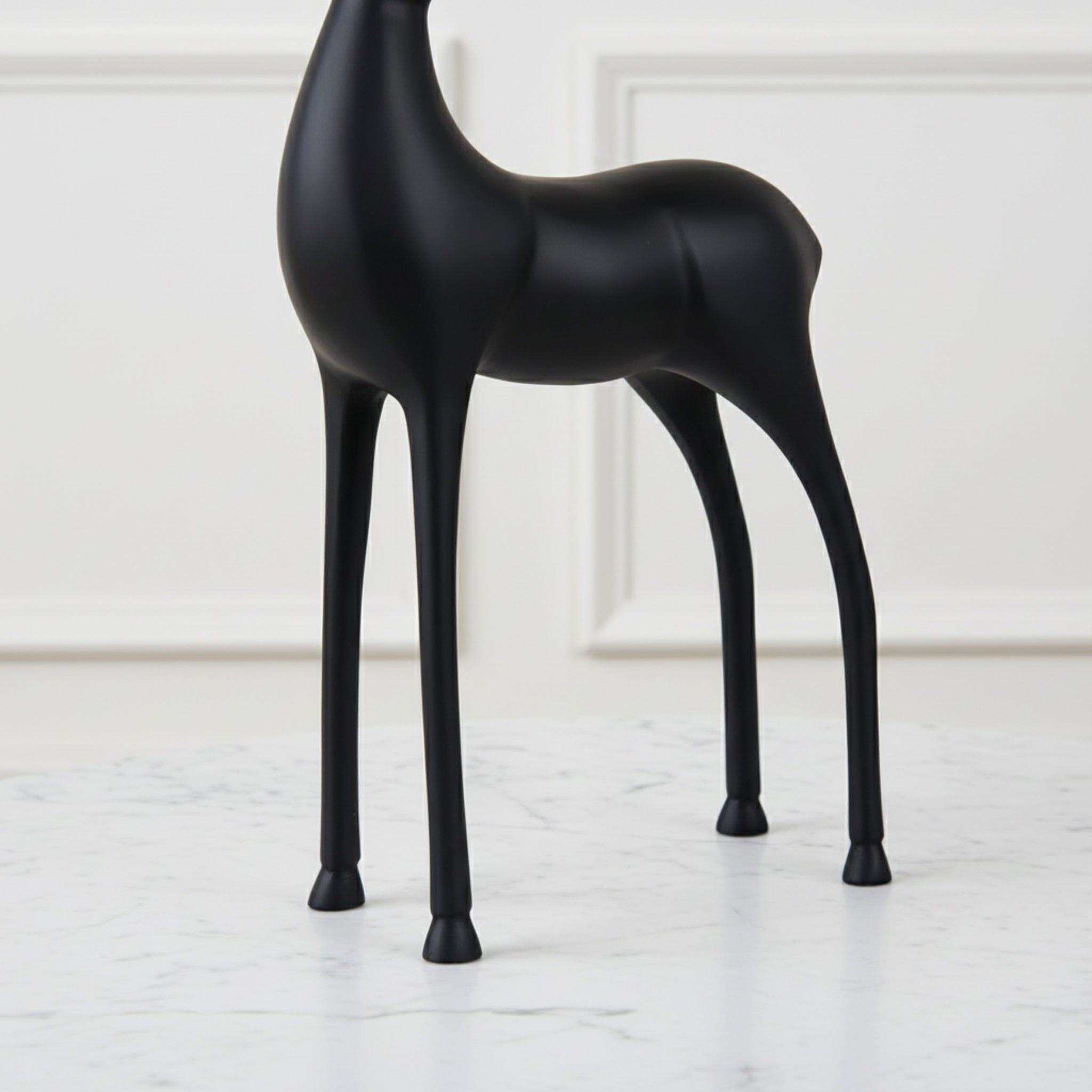 This Vixen Reindeer Black Set features a majestic pair of statues in large and small sizes, perfect for creating a layered holiday display. Each reindeer is meticulously crafted with a high-shine black finish that captures the spirit of the season. The elegant silhouettes feature intricate antler detailing and a graceful stance, making them ideal for mantel arrangements, table centerpieces, or entryway consoles. These durable, metallic accents blend traditional festive charm with a sleek, modern aesthetic for a sophisticated winter look.